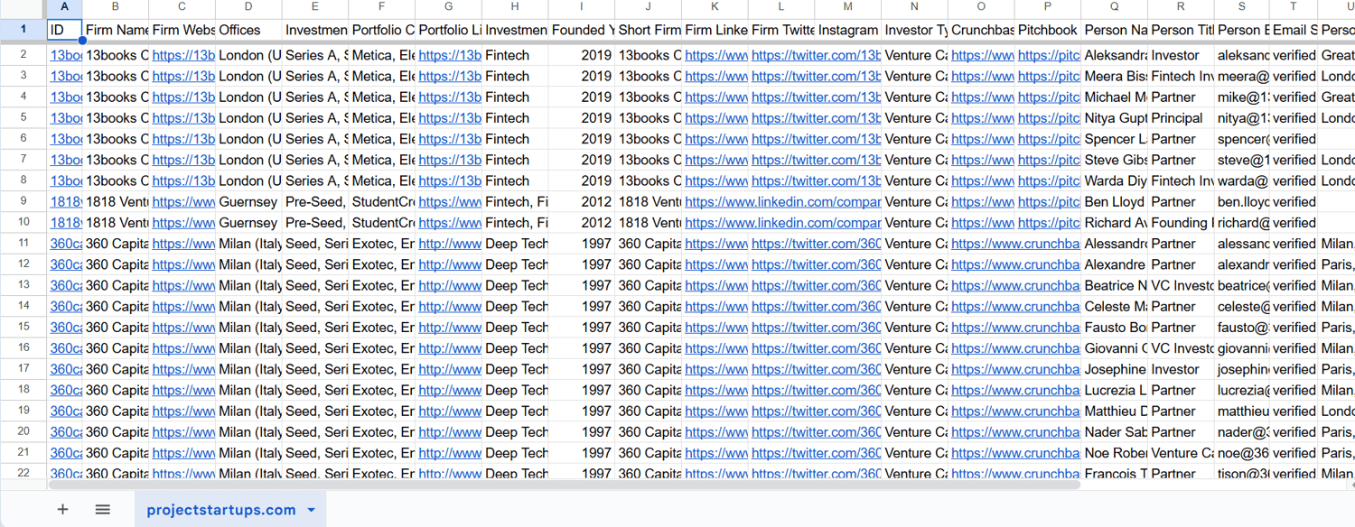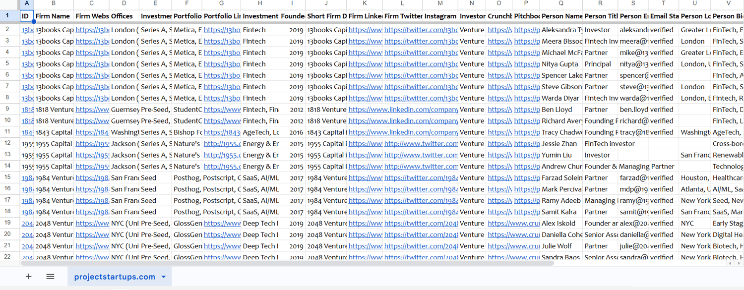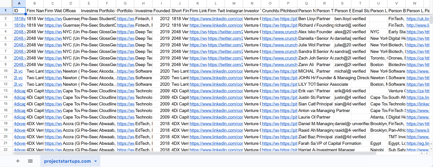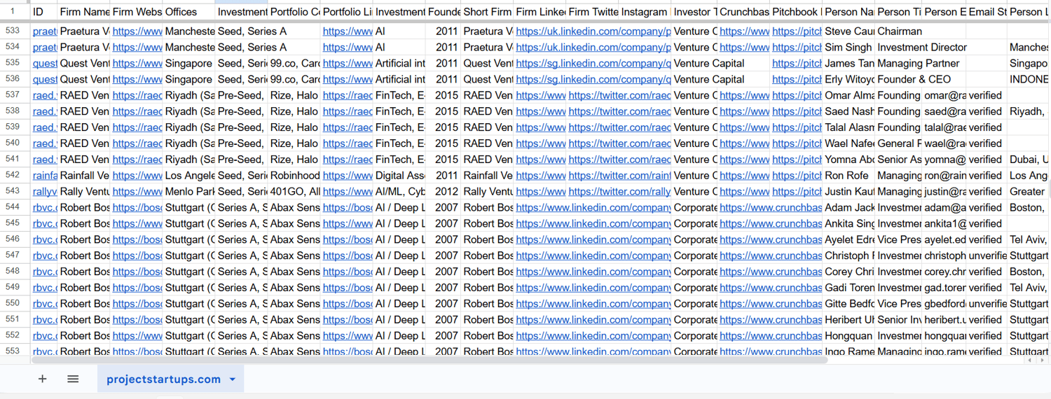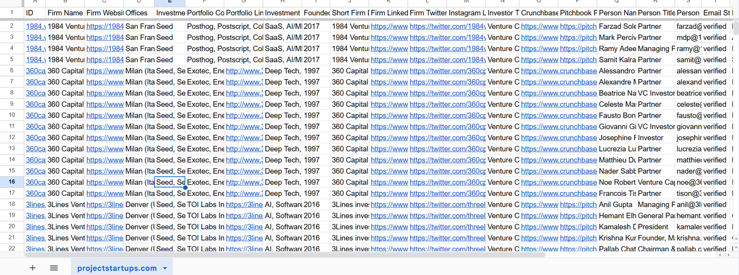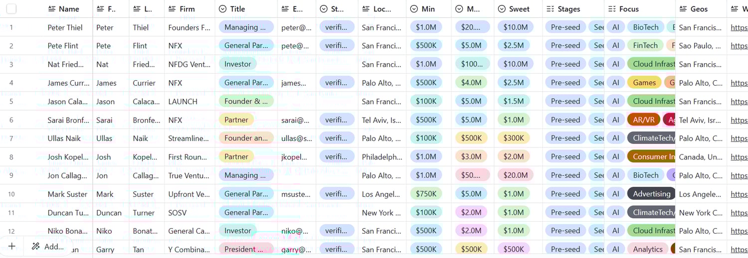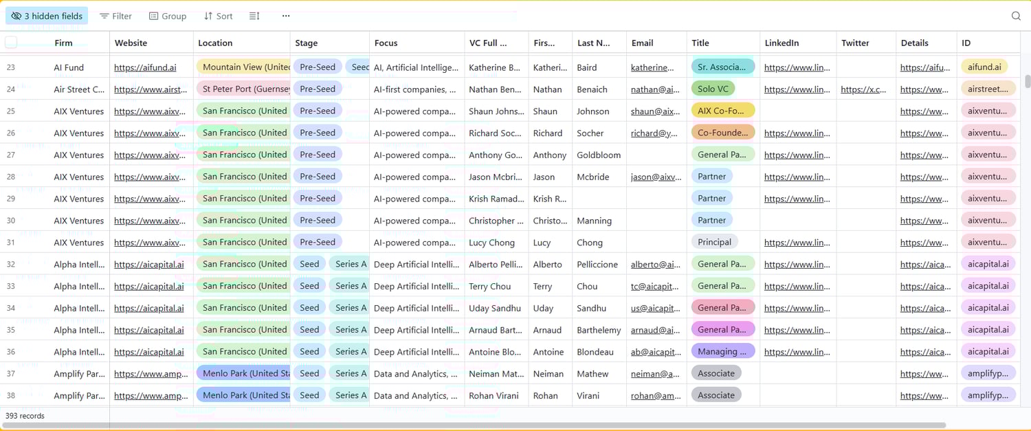 The data is clean, verified, and ready to import into your CRM or spreadsheet. Perfect for founders raising capital, researchers analyzing the VC ecosystem, or anyone who needs direct access to verified venture capital contacts and funding intelligence.