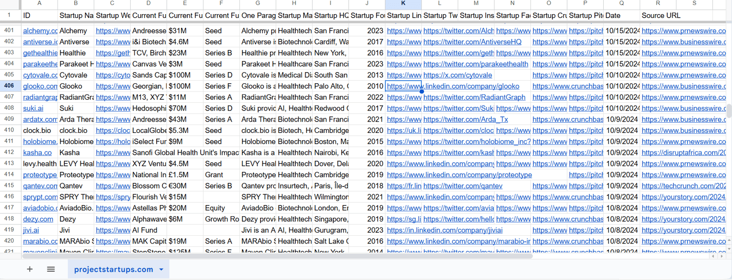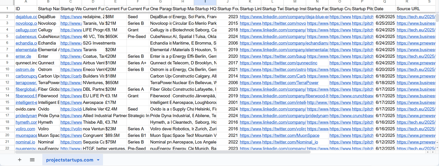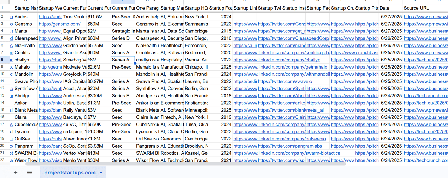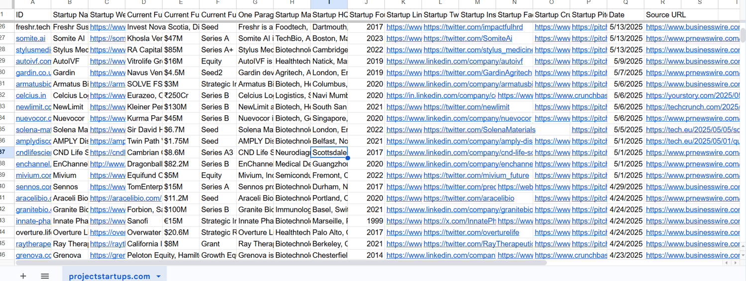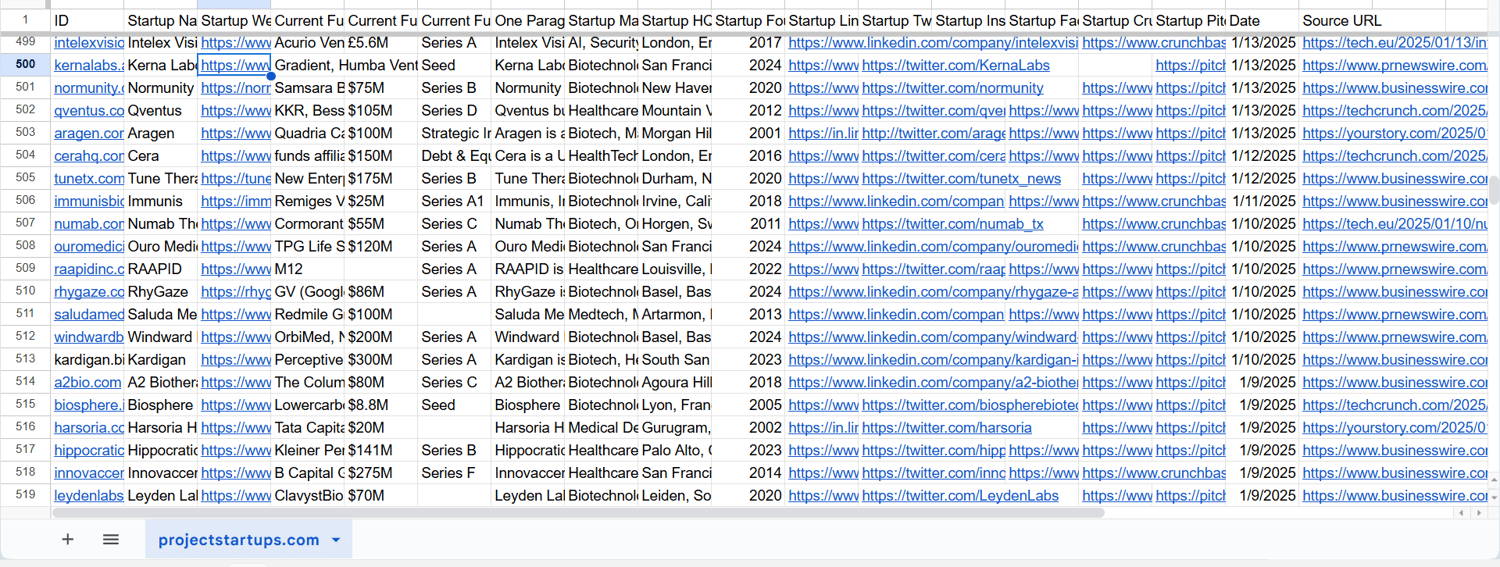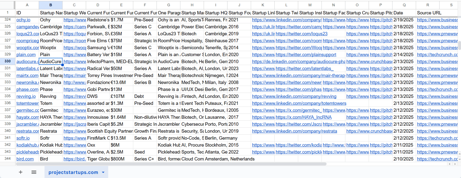 Funded Startups full database